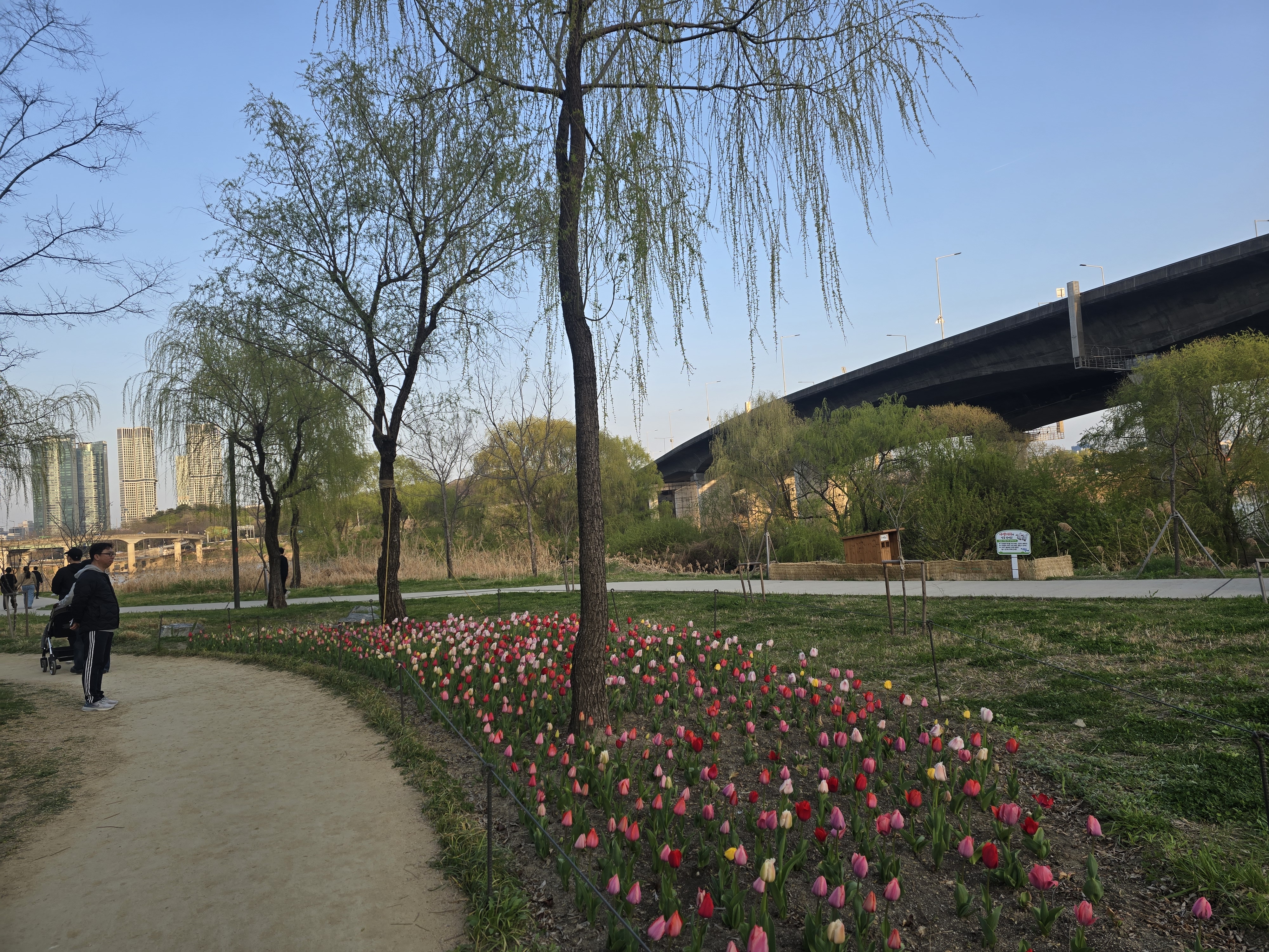한강을 바라보는 탁 트인 풍경, 잘 정비된 산책로, 그리고 곳곳에 마련된 쉼터들이 있어서 편하게 봄을 즐길 수 있었다.